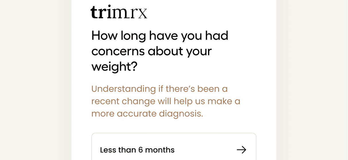 TrimRx is not a medical practice or a pharmacy. We do not employ health care providers, nor do we directly provide medication of any kind. Depictions of products on this website do not represent actual products that you will receive. Products will not bear the TrimRx name or logo.